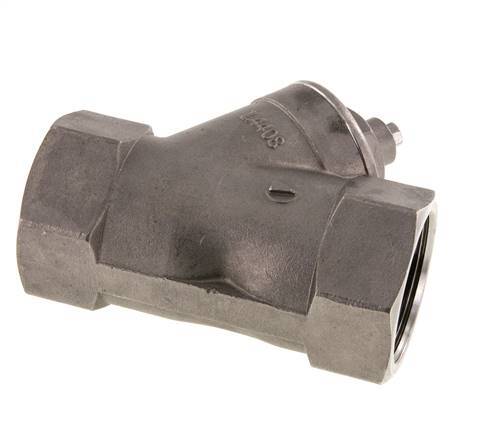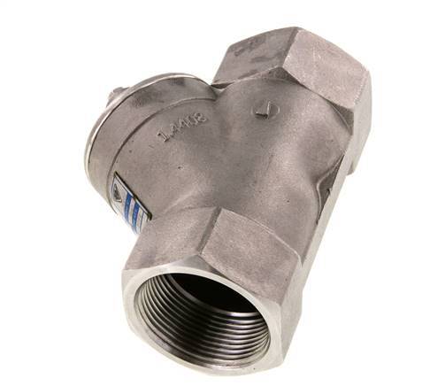 RVS Y-filter met G 1 1/2" binnendraad en een RVS gaas met een filtergrootte van 0,25 mm. Voor media tot 40 bar (580 psi) bij temperaturen tussen -20 °C en 200 °C (-4 tot 392 °F). Te gebruiken in één stroomrichting (zie pijl op behuizing). Het vuil verzamelt zich in het filter en kan worden gereinigd door de afdichtingskap los te draaien.