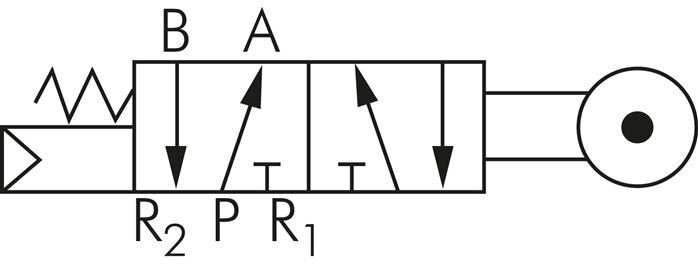 Gebruik een 5/2-weg ventiel in toepassingen die continu tussen twee posities bewegen, zoals het uit- en intrekken van dubbelwerkende cilinders, waarbij het niet nodig is de luchtstroom te stoppen. Het pneumatische rolbediend ventiel detecteert de plaats van bewegende delen mechanisch binnen machineautomatiseringssystemen. Het ventiel wordt geactiveerd wanneer een bewegend onderdeel er langs beweegt.