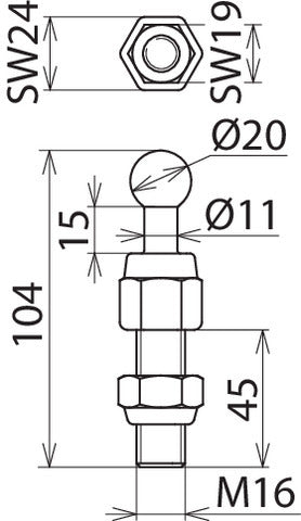 Vaste kogel met schroefdraad en moer M16x45mm D20mm recht - 754645