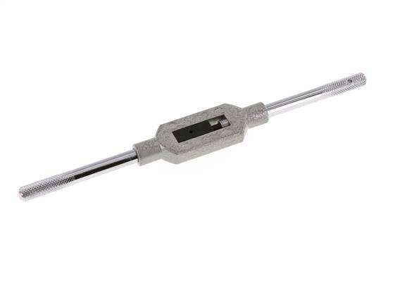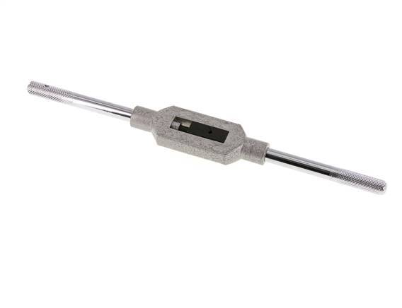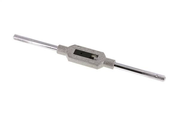 Dit is een maat 2 verstelbare moersleutel voor draadtappen, gebruikt voor handmatig draadsnijden, geschikt voor M3,5 tot M12 en G 1/8" tot G 3/8" draadtappen.